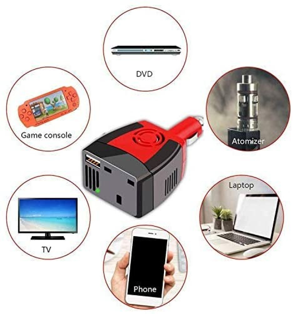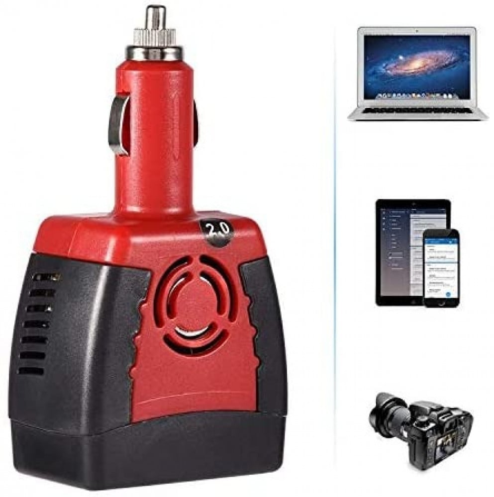 محول طاقة للسيارة من دي ال سي 12 فولت تيار متردد - 220 فولت - أحمر وأسود 150 واط